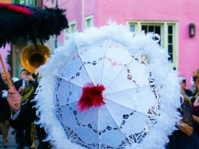 A second line parade is a festive New Orleans tradition when people march and dance in a line waving highly-decorated umbrellas and handkerchiefs to celebrate special events. The most popular occasions are weddings and jazz funerals. It’s always an exciting experience to witness a second line parade passing by, and also a great photo op. But where exactly did this social custom come from, and when exactly do people have second-line parades in the Big Easy?